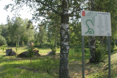 Ulkoilualue sijaitsee Tammijärven rannalla, Harjuntietä Kirkonkylästä pohjoiseen.
