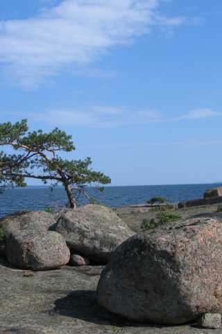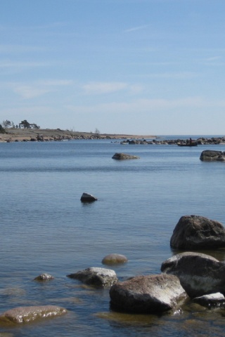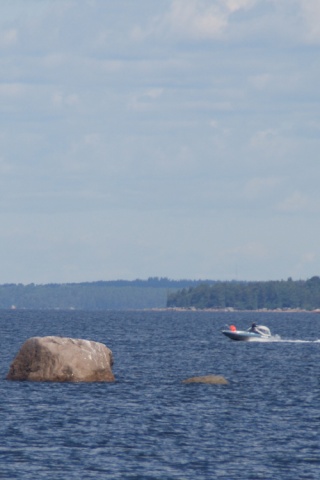 Saaren lounaispäässä on suuri, kaakkoon avautuva lahti, jolle antaa erityisen ilmeen sen lukuisat siirtolohkareet. Lahti on kivinen ja vaatii varovaista rantautumista. Luonnonsatamaan ajo on helppoa, kunhan alkaa varoa ennen pidemmälle lahden perälle menemistä.