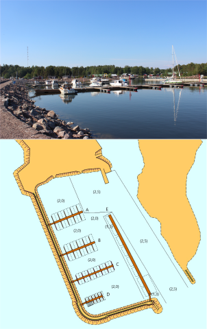 Laiturissa on 1-2 vieraspaikkaa, sivukiinnitys. Väyläsyväys 1,0 m.
